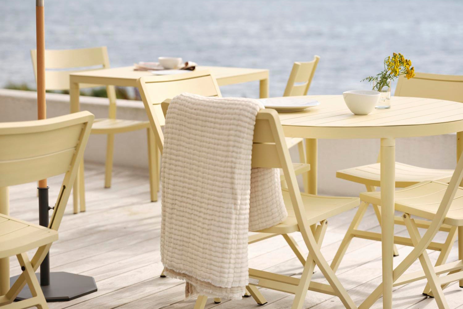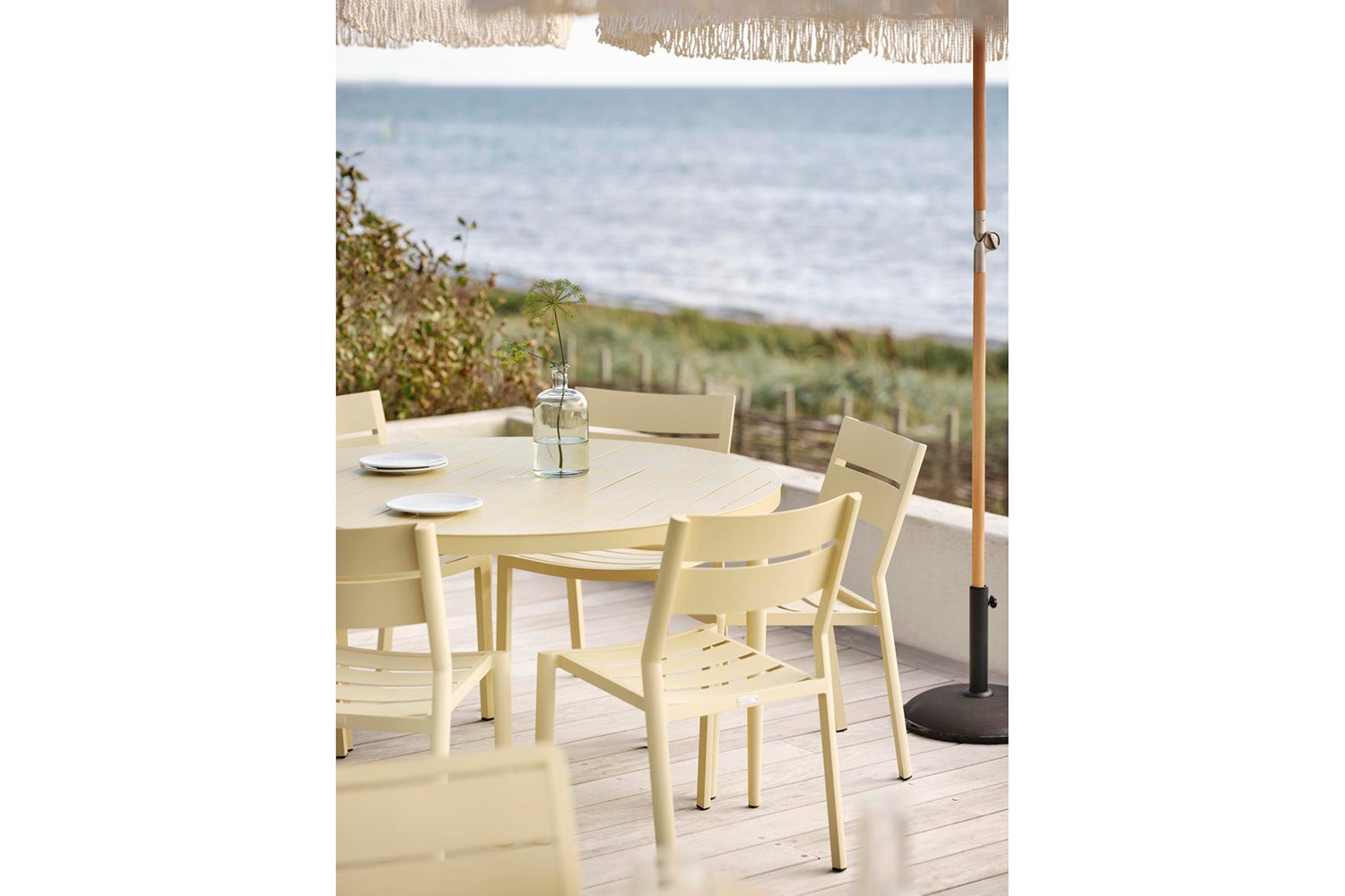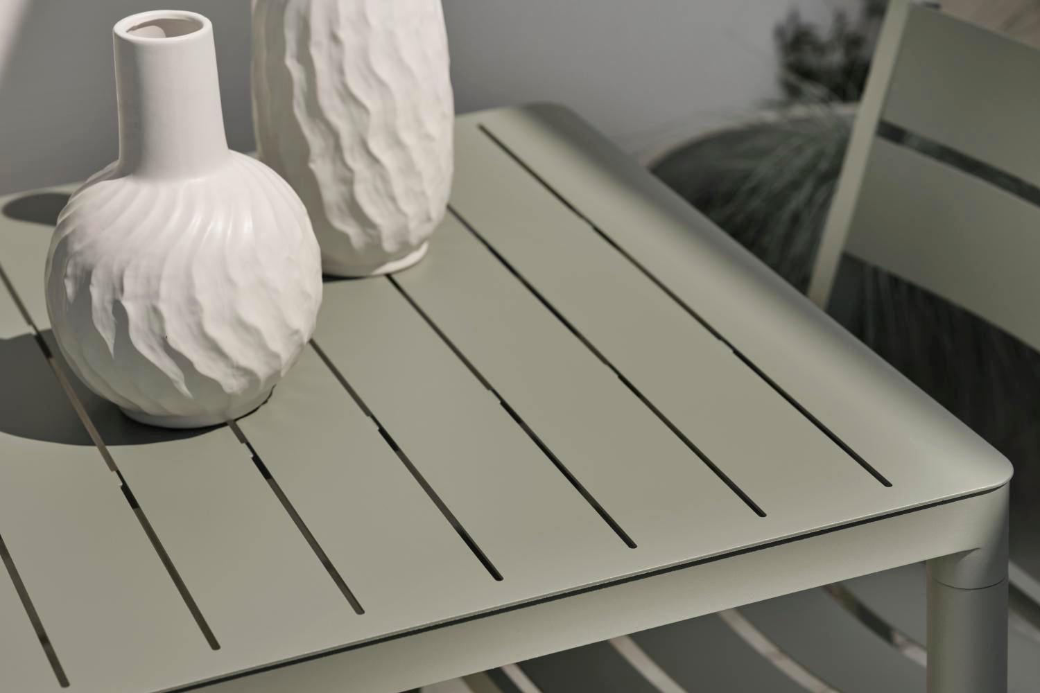 Bigby, the best of Scandinavian design, a combination of big city vibes and a summer feeling. Made in aluminum and designed with elegant lines and well-thought-out details – including the tapered legs and stylish table top with ribs. The summery colors also give the extra boost to the feeling.