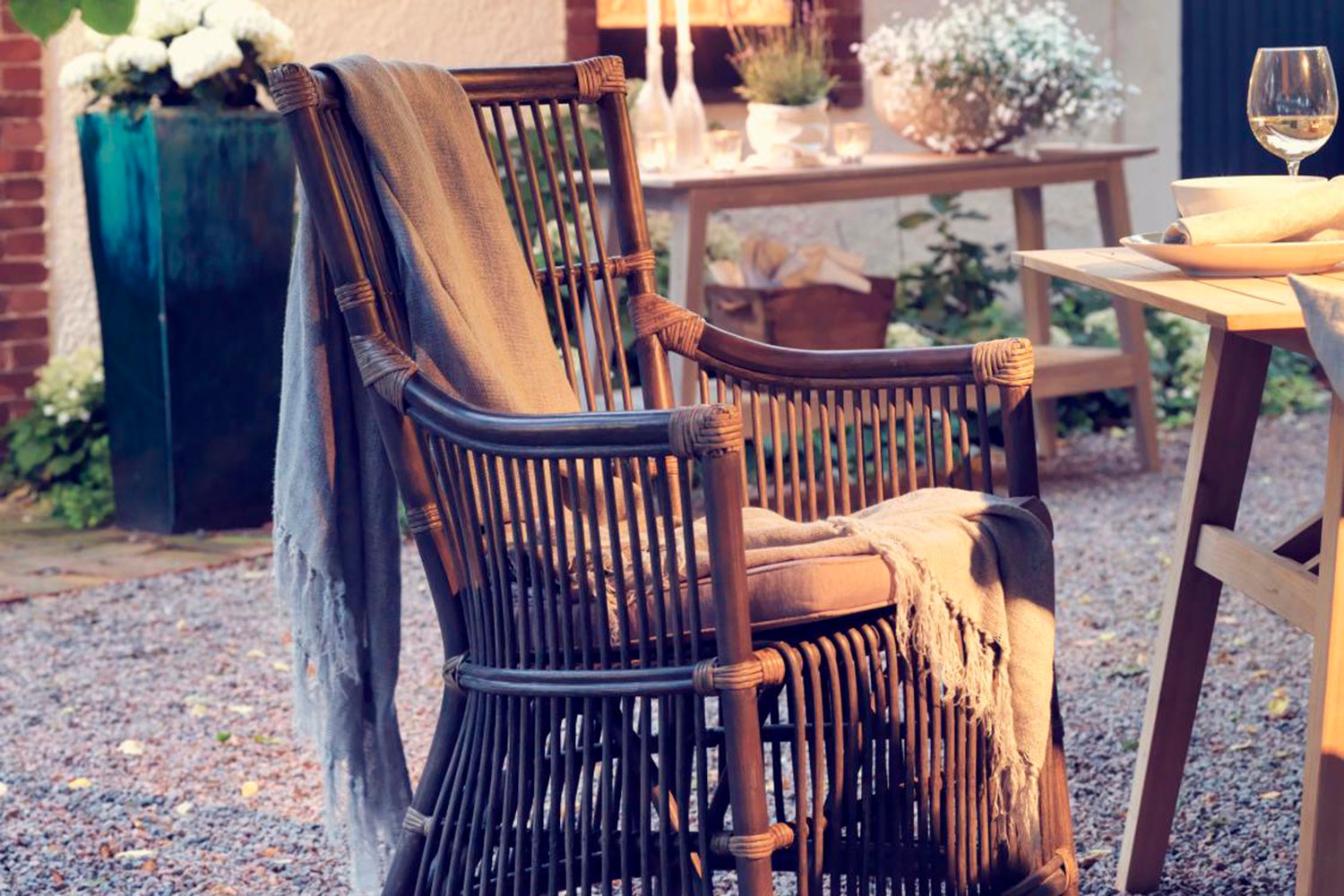 "Our authentic rattan furniture is hand-woven with great skill. The Bonete armchair looks great with our teak tables.