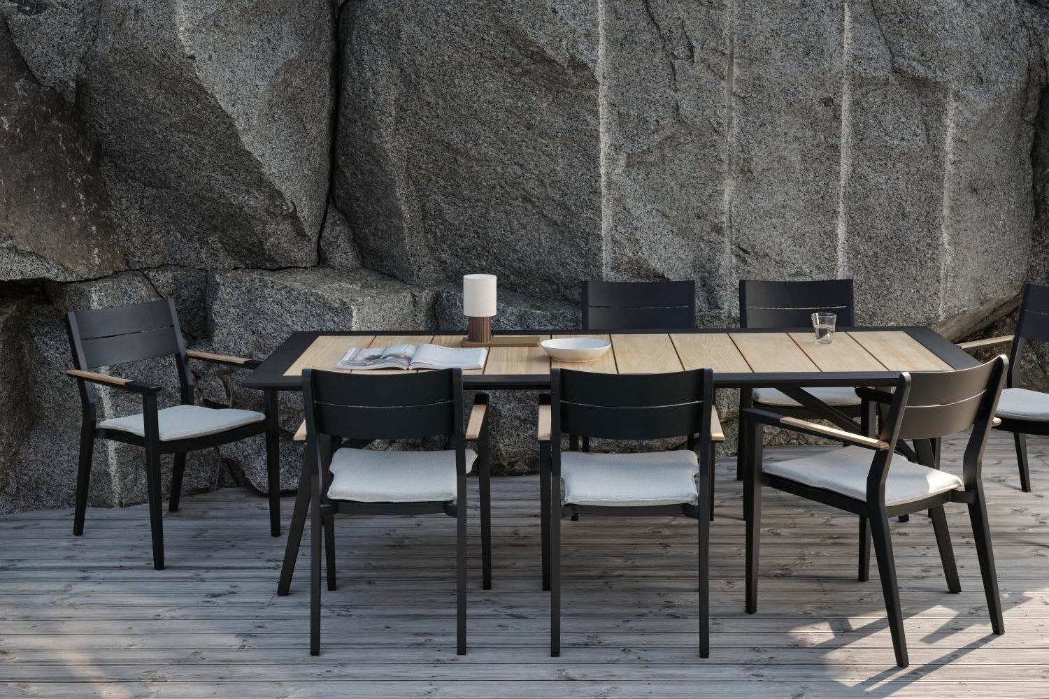A table with top made of transverse teak ribs and a stacking chair with matching seat and back make the Chios an attractive dining set that fits in almost anywhere. Despite its slim dimensions, it can be left outside year after year and requires minimal maintenance. The Chios family also includes a matching small two-seater sofa, deckchair and sofa group in the same elegant teak design. The chair has stainless steel fittings.