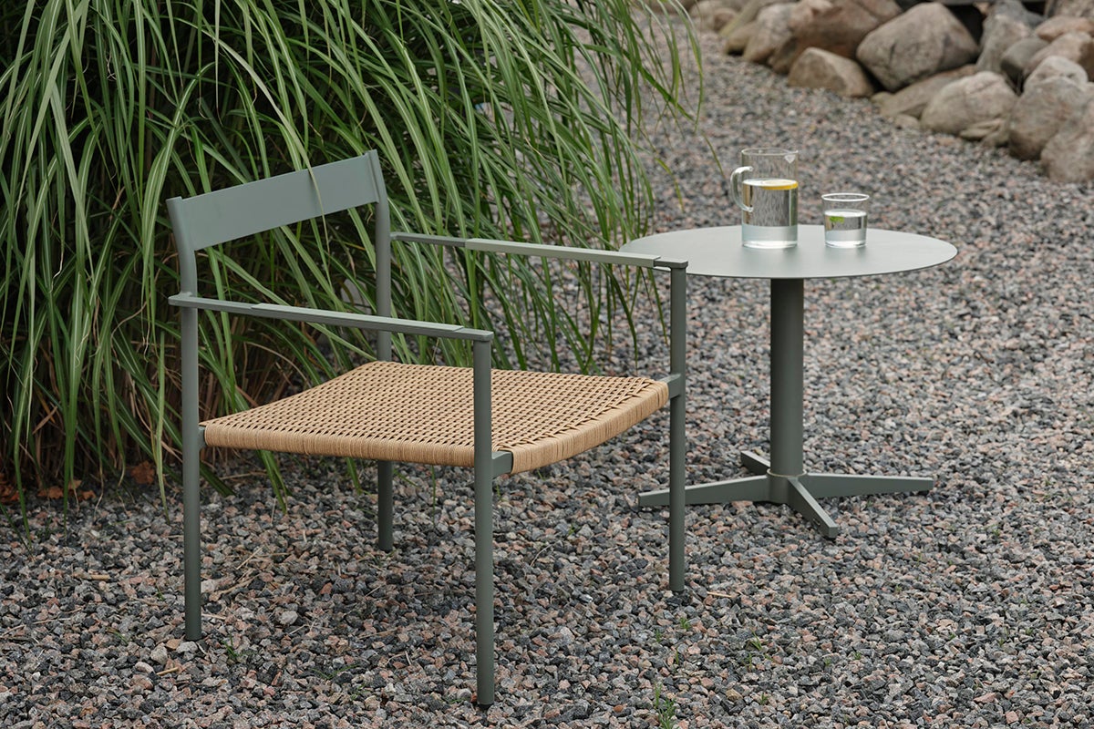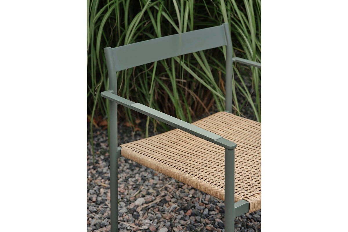 DK is honouring Scandinavian design and brings to mind masterpieces from the 1950s. An elegant and stable frame in aluminum with contrasting details that enhance the feeling and keep DK current - for a long time. The contrasting colors of the armrest and the braided seat in artificial rattan are details that elevate the chair. The consistently airy feeling in the design is a clear legacy from the Scandinavian classics. Available in four colors.