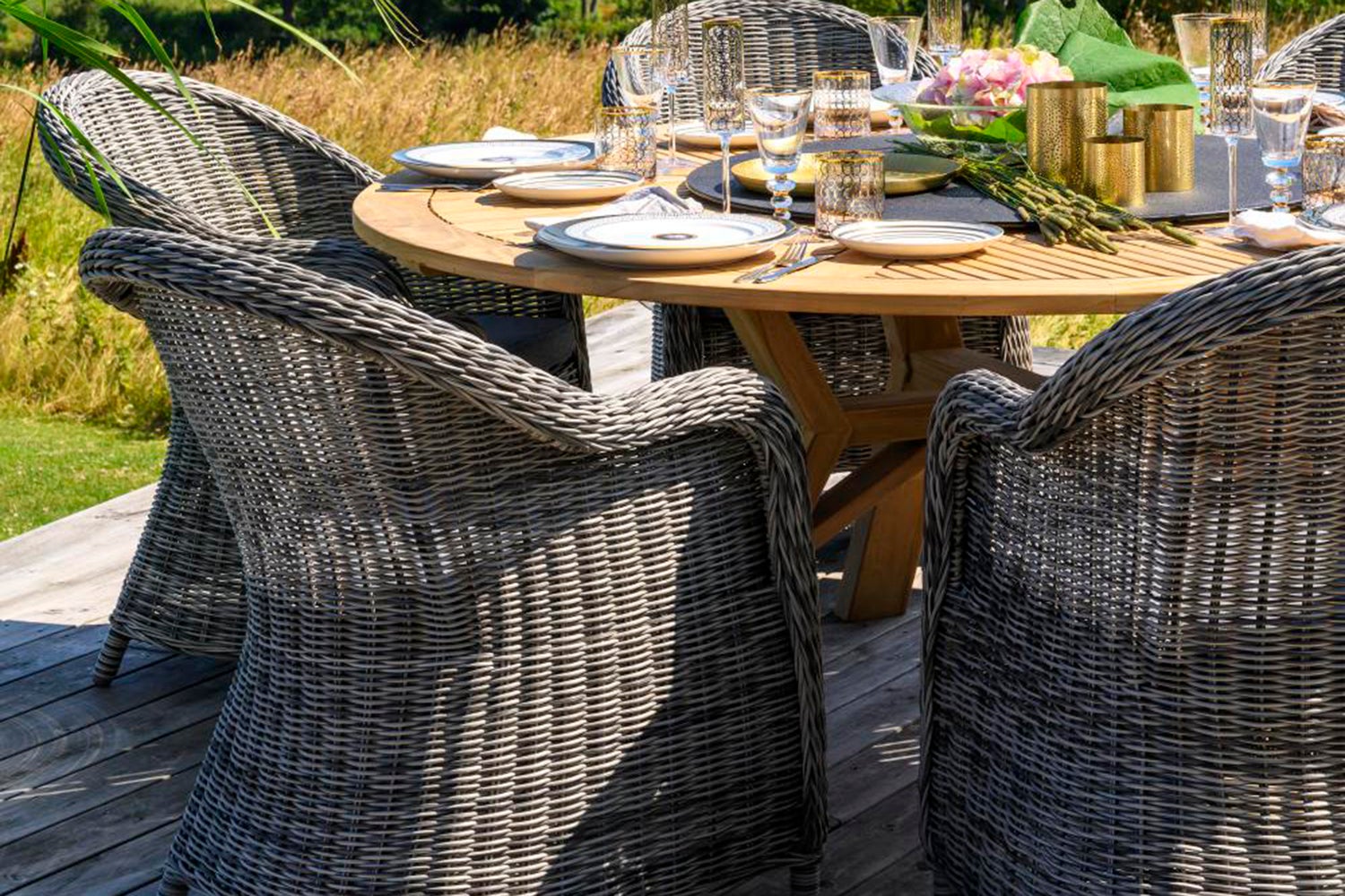 A dining chair that is an ideal match for our teak dining table. Eads is produced in the same natural and grey synthetic rattan as the Rosita range, and also has the same colour scheme for the cushions. An ideal match! The backrest cushion is sold separately.