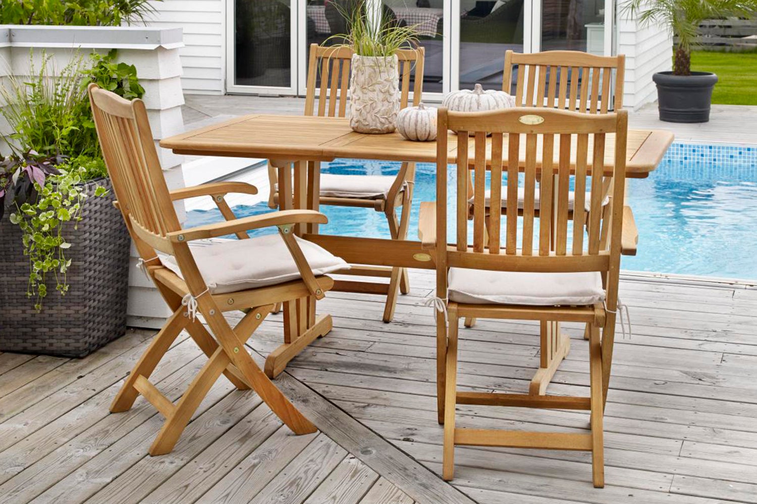 Made of natural teak, Filipa is available as a foldable chair and armchair (which is also foldable). Combines stylishly with one of our teak tables.