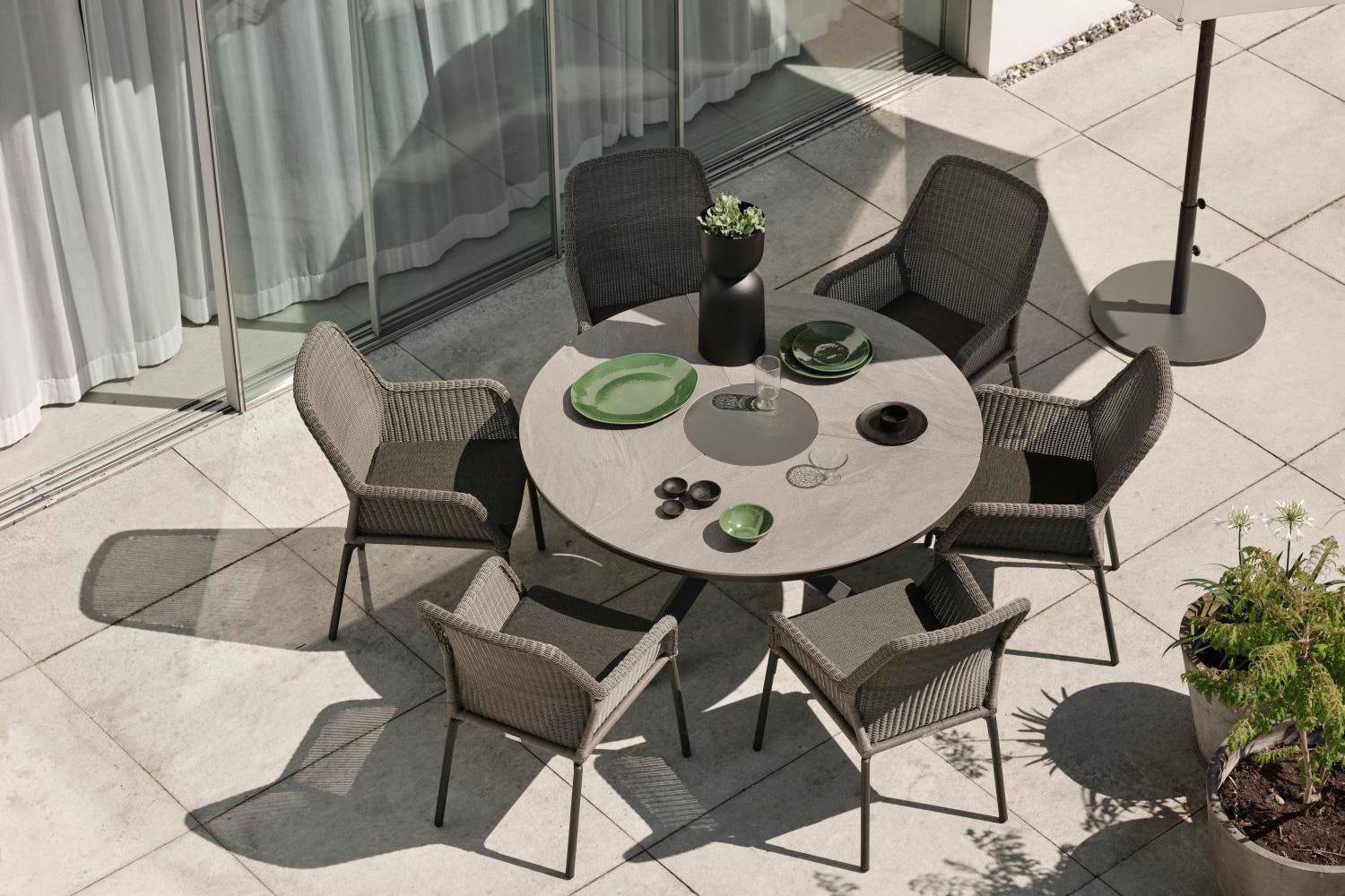 Flat is the umbrella base you can rely on, made of powder-coated steel and with double screw fastenings for extra stability. It's sleek and simple with its Scandinavian design language. It can be adjusted to fit umbrella poles with widths of 38 and 48 millimeters.