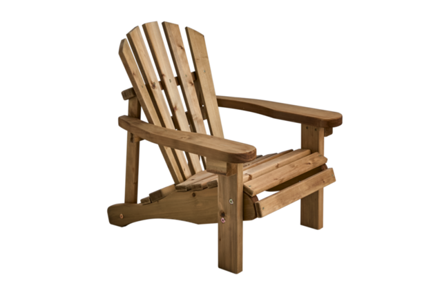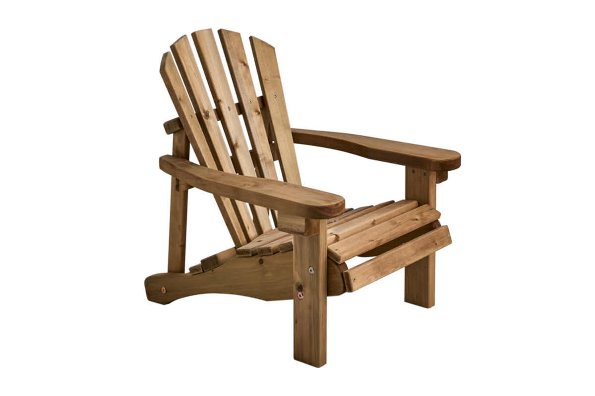 Adirondack-style recliner in children's size. Made of brown, impregnated pine, it becomes a charming and durable piece of furniture for the youngest. The shape and design provide comfortable seating, perfect for play and relaxation outdoors.