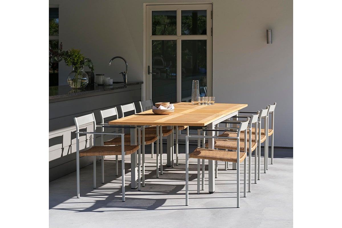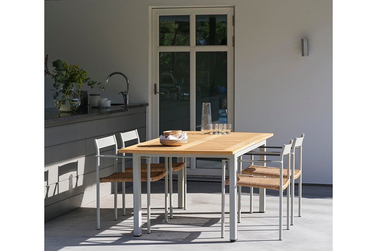 Lyon are butterfly extending tables in teak. The design of the table top frames the rounded legs nicely and the entire piece is robust and elegant at the same time. The classic colours means that it matches many of our chairs no matter what combination you prefer.