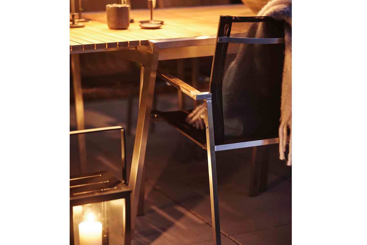 Clean lines and timeless design with a modern twist. Naos is a series where the mixture of materials is made with the utmost finesse; stainless steel (316) and teak details.