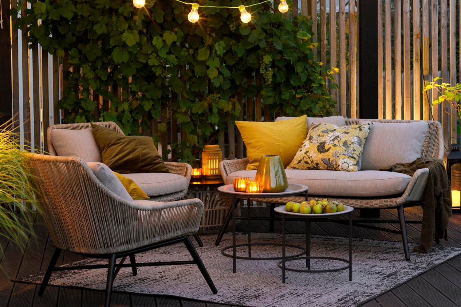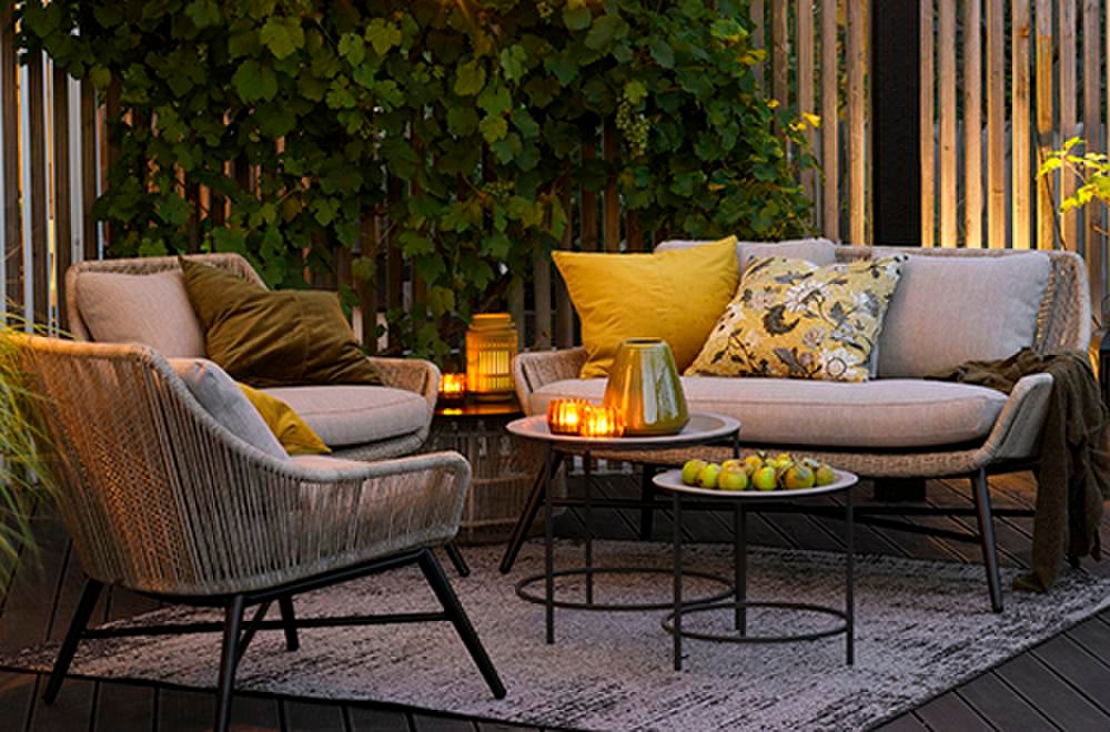 Sofa group in twisted rattan with modern, rounded contours. Ideal in combination with our tables from the Pamir series.