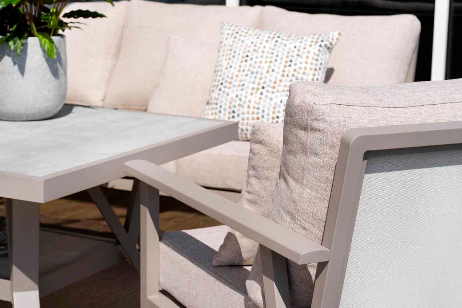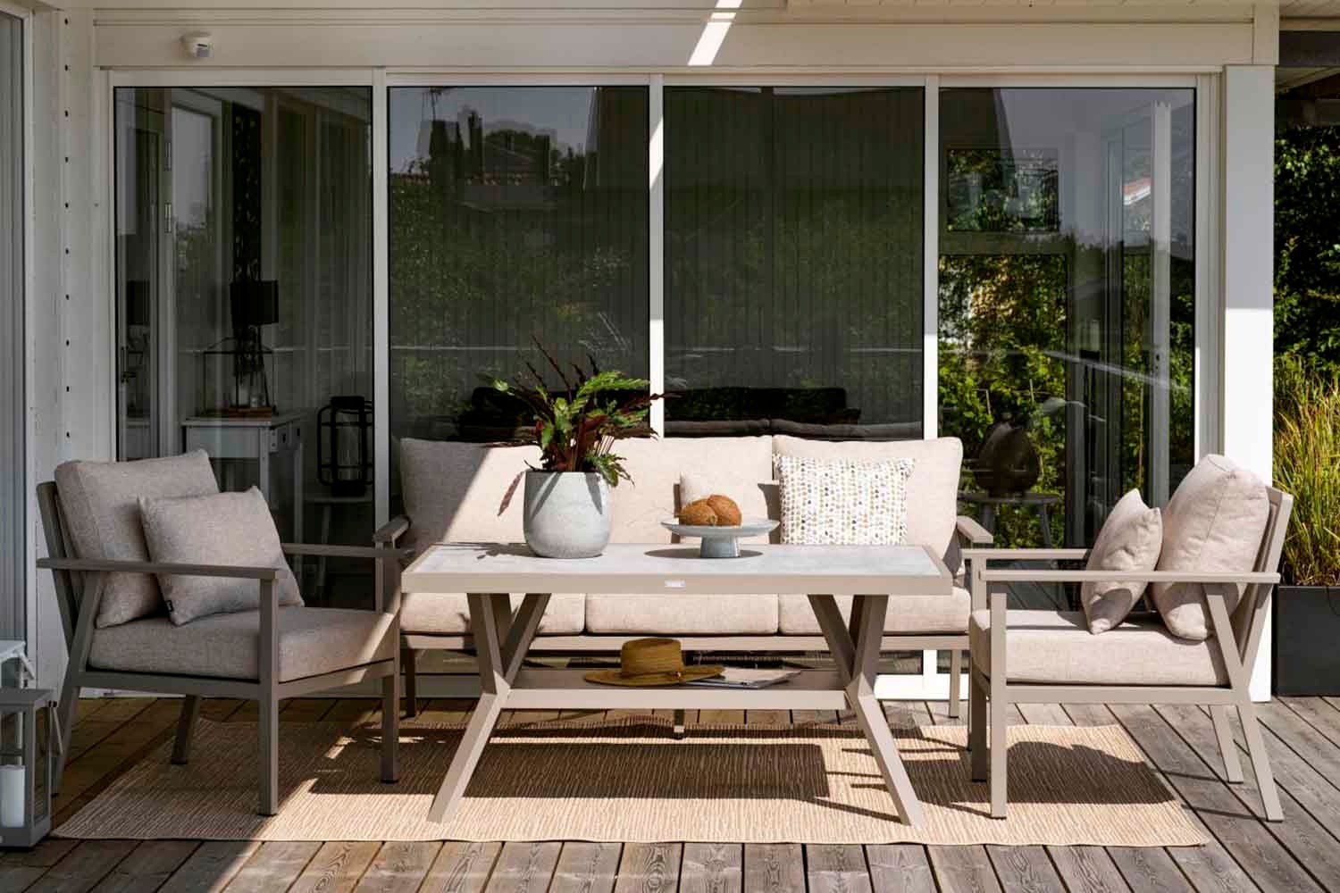 A modern yet classic series in aluminium that offers an array of possible combinations. The soft, curved contours create a pleasant and inviting feel in this new series, with a focus on the details. Available with a frame in white, grey or khaki aluminium.