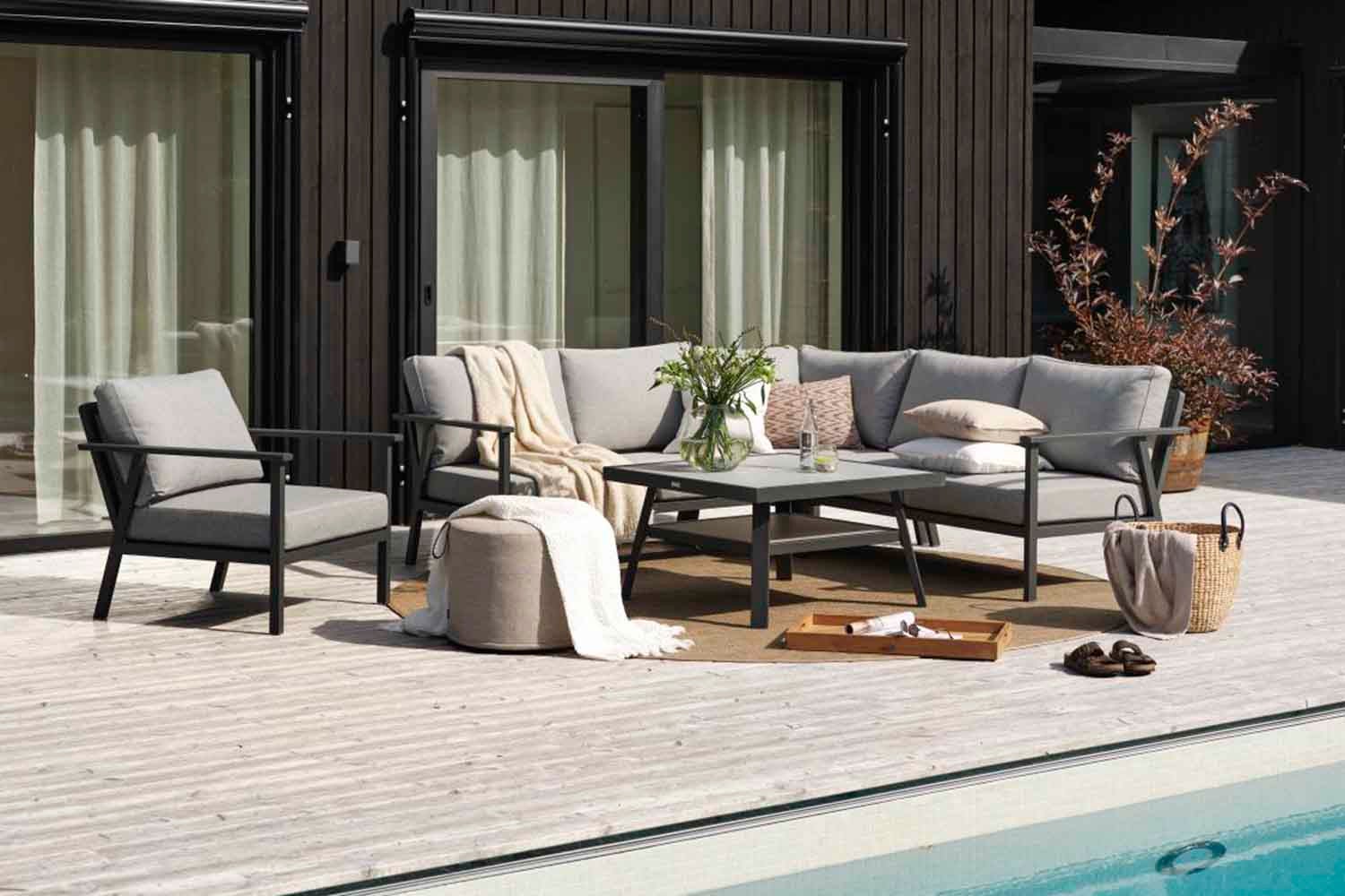 A modern yet classic series in aluminium that offers an array of possible combinations. The soft, curved contours create a pleasant and inviting feel in this new series, with a focus on the details. Available with a frame in white, grey or khaki aluminium.