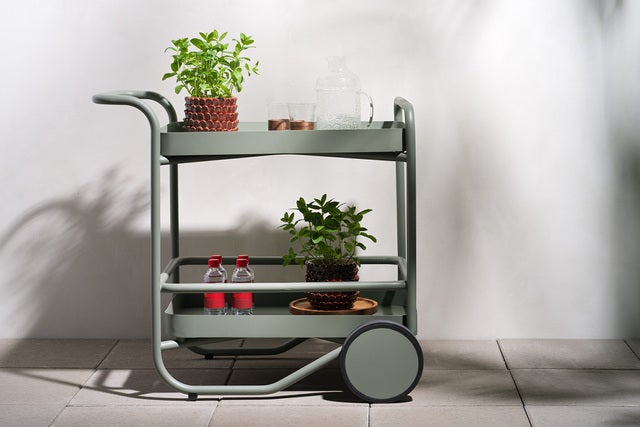 More than a serving table – Trolly is a multifunctional statement piece for modern outdoor living. Inspired by Scandinavian design, it combines soft lines with smart function. Use it as a serving trolley, side table or lift off the trays to serve immediately. Harmonious transitions between the frame, trays and wheels elevate the versatile design. Design: Johan Skoogh.