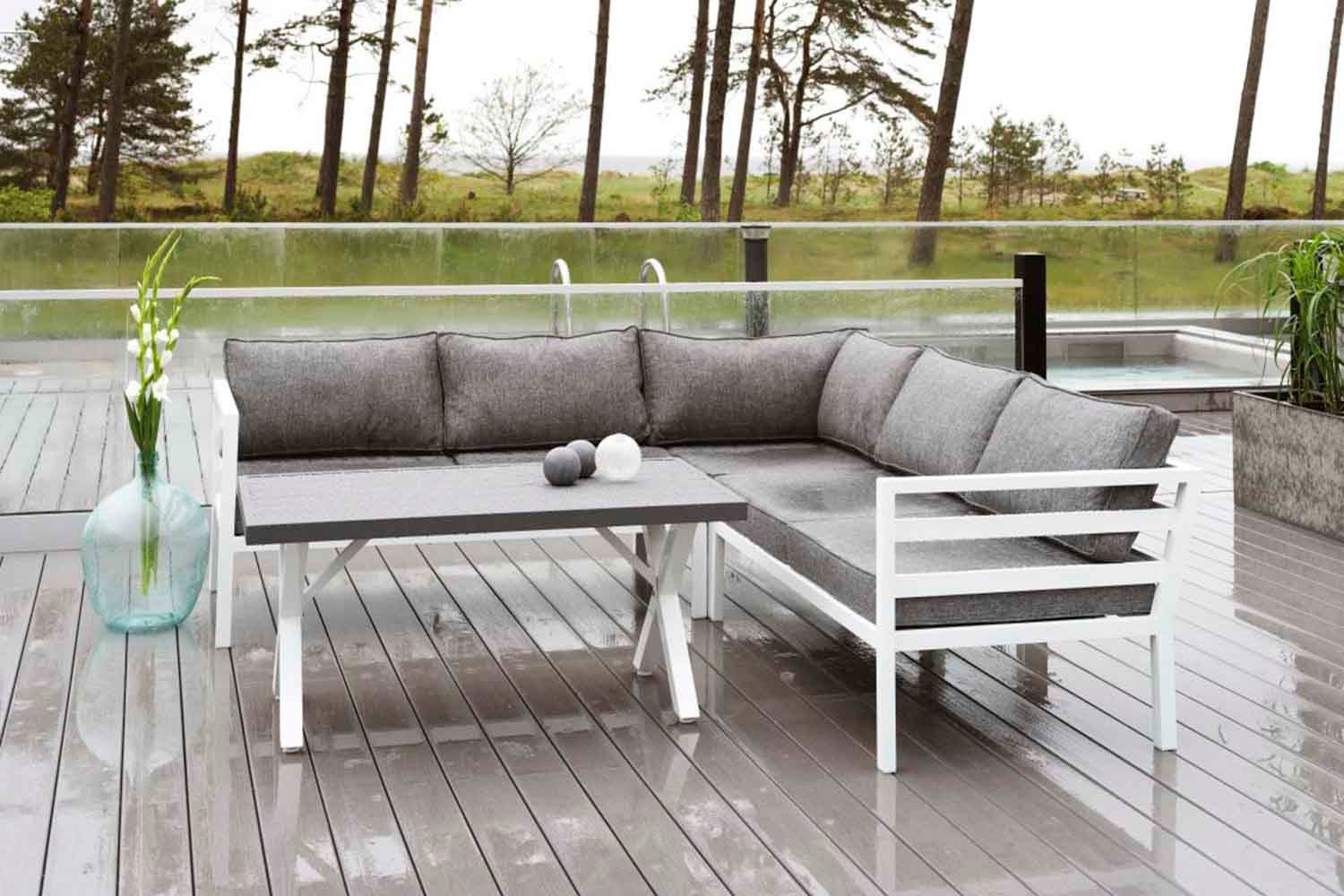 Weldon is a series in appealing design and matte finish. The structural parts have all-weather pillows - perfect for Nordic climate.