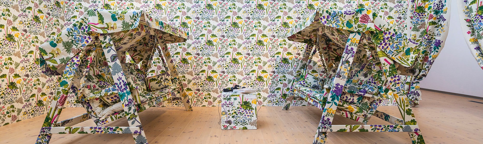 Brafab's Kornhult hammock is blossoming that little bit extra in an exhibition about the Jobs sisters at Vandalorum, outside Värnamo.