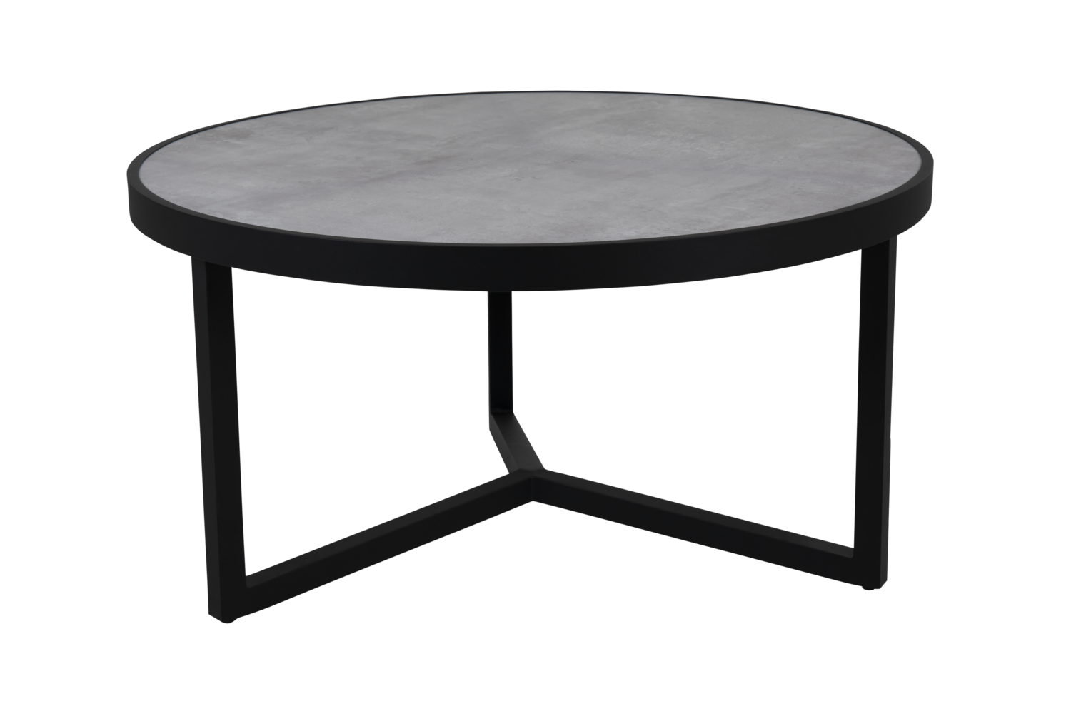 A coffee table blending cutting-edge technology with modern design. The 3D-printed glass has an elegant concrete pattern that provides a tactile, attractive texture. Stable frame in black aluminium.